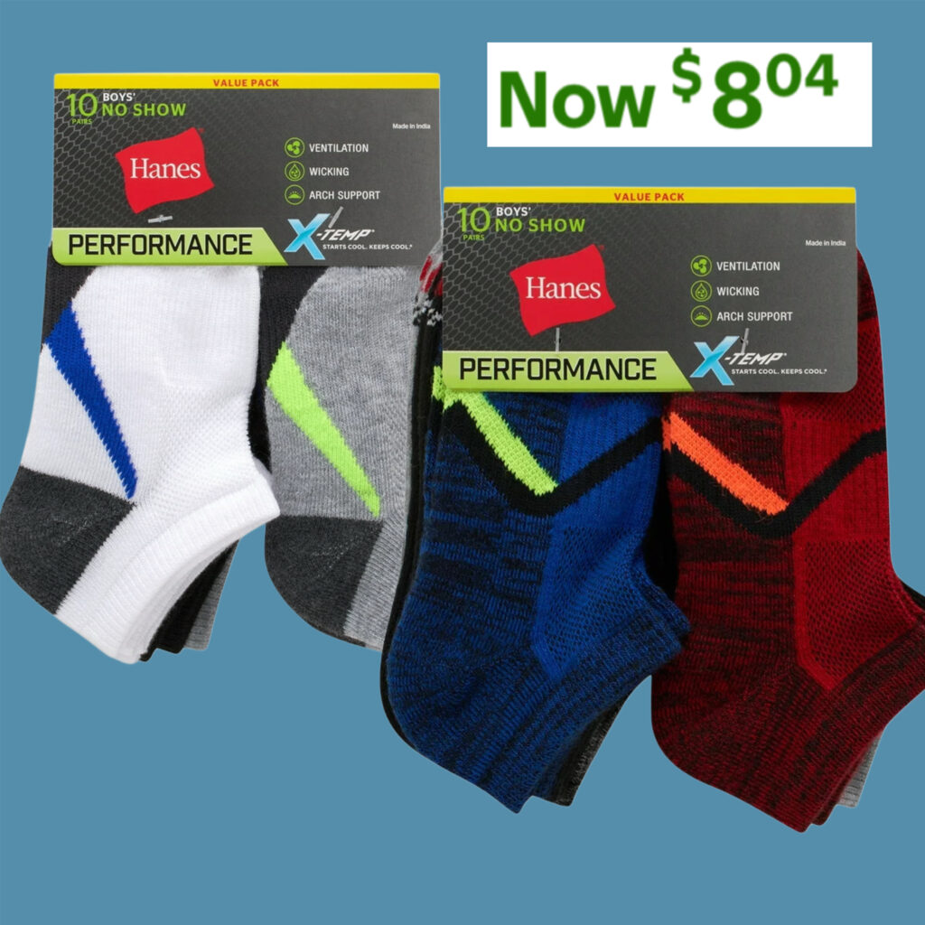 Hanes Boys’ X-Temp Performance No Show Socks, 10 Pack