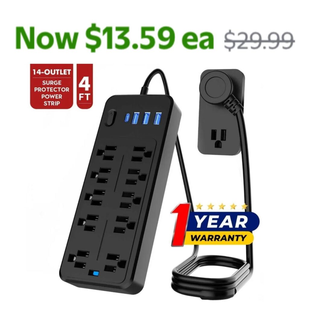 Outlets Power Strip 4ft Cord with 4 USB Ports