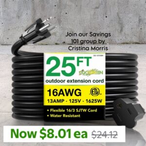25 Ft Power 16/3 25′ Heavy Duty Extension Cord