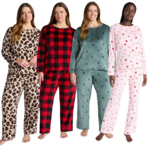 Women’s Folded Giftable Plush Pajamas Set, 2-Piece, Sizes S-3X