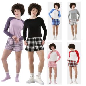 Women’s Long Sleeve Tee and Flannel Shorts Pajama Set, 2-Piece, Size XXS-XXL