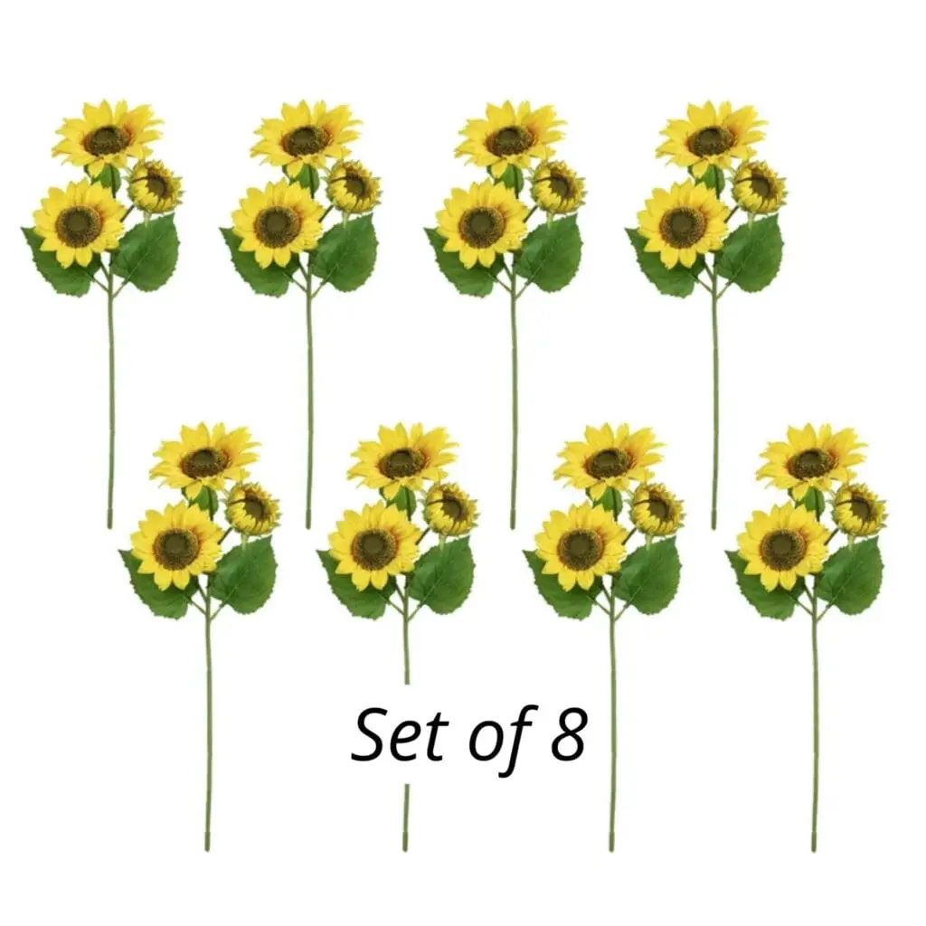 Artificial Silk Yellow Sunflower Long Stem, 27”, Set of 8