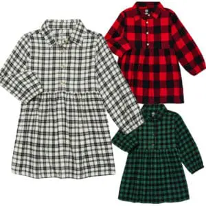 Toddler Girls’ Flannel Shirtdress with Long Sleeves, Sizes 12M-5T