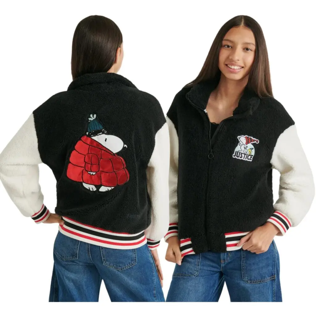 Justice x Snoopy Girls Sherpa Jacket, Sizes XS – XLP