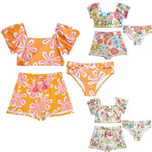 Jessica Simpson Toddler Girl Swimsuit Set with Shorts, 3- Piece Set, Sizes 2T-4T