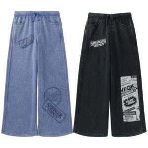 Girls Graphic French Terry Pants with Denim Wash, Sizes 4-8