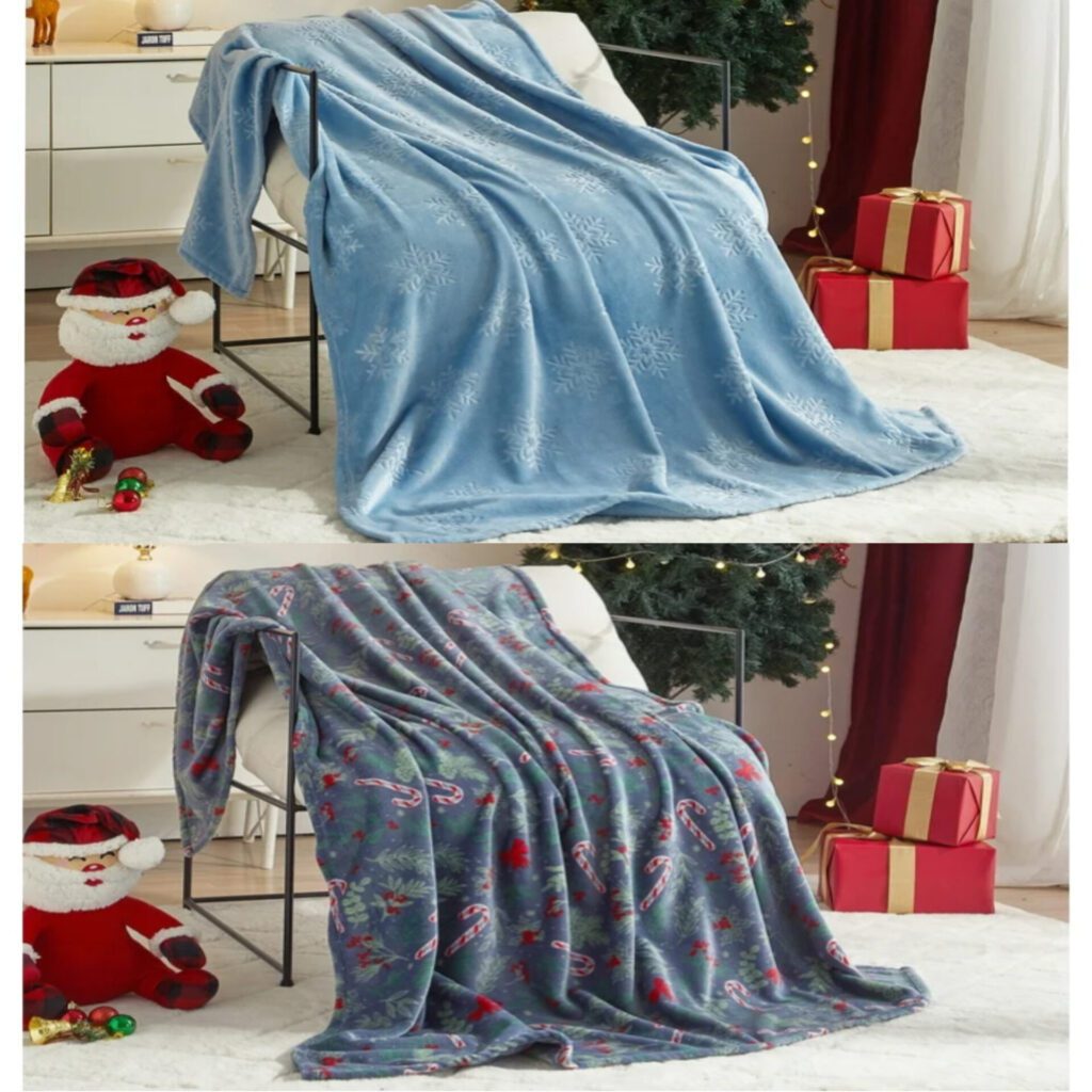 Cozy Christmas Plush Embossed Overized Throw Blanket