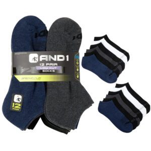 AND1 Men’s Socks, Cushion Low Cut Socks, 12 Pack