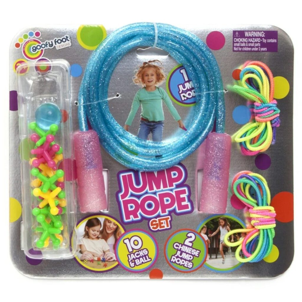 Jump Rope – Includes 7 Foot Glitter Infused Jump Rope, 10 Jacks & Ball, 2 Chinese Jump Ropes