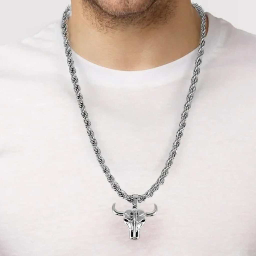 Men’s Steer Head Pendant Necklace, Silver-Plated, 1 Pack