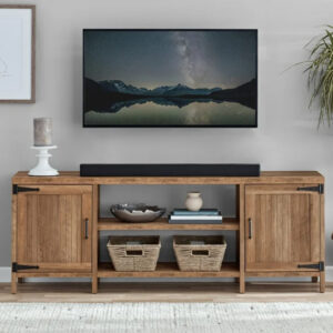 Farmhouse TV Stand for TVs up to 70″, Rustic Weathered Oak