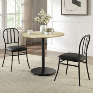 3-Piece Indoor Dining Bistro Set, Wood Table Top, Two Black Seat Chairs