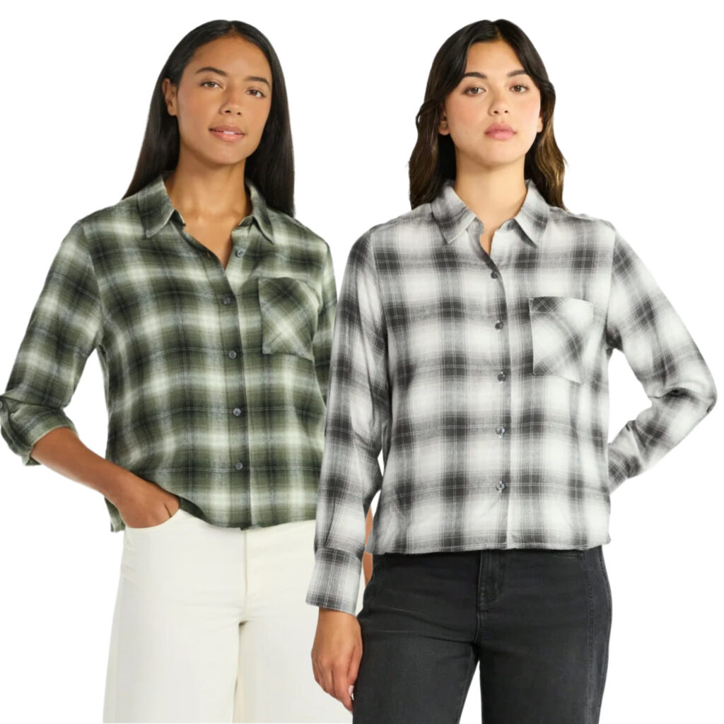 Women’s Cropped Flannel Shirt with Long Sleeves, Sizes XS-XXXL