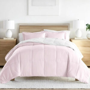 Noble Linens 3-Piece Blush & White Reversible Comforter Set, Full/Queen