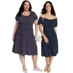Women’s Smocked Midi Dress with Short Puff Sleeves, Sizes XS-XXXL