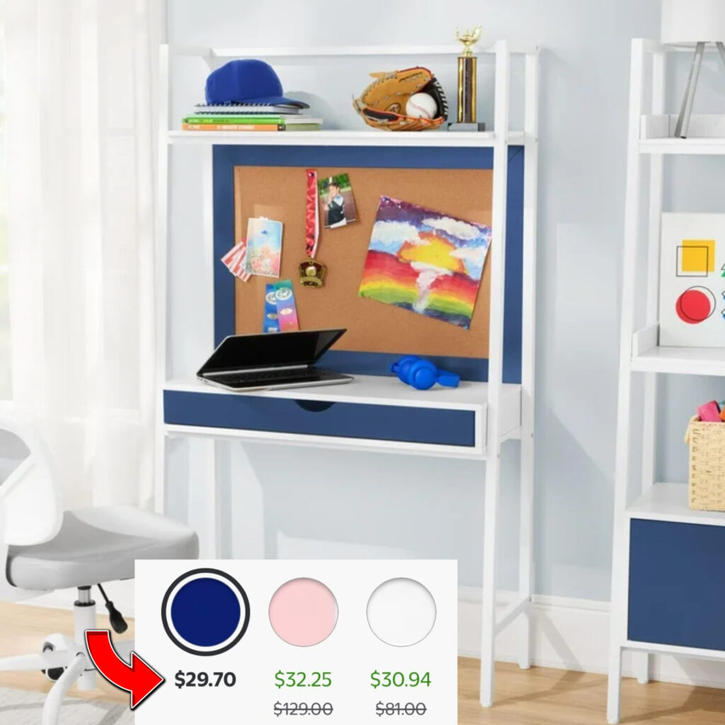 BYO Kids Ladder Desk with Bulletin Board, Navy Blue/White