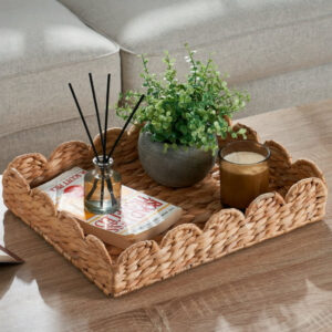 11″ x 14″ Scalloped Woven Natural Water Hyacinth Tray
