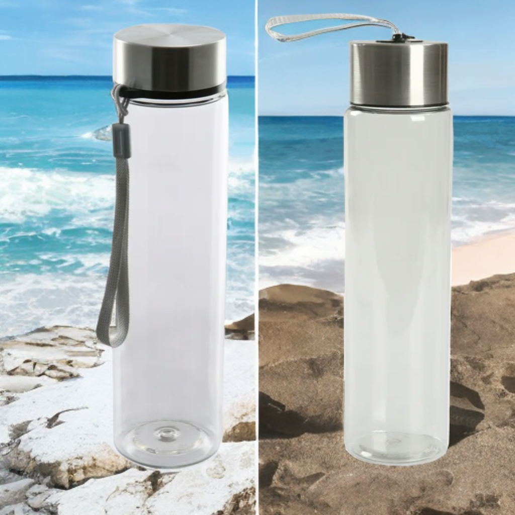 18 oz Plastic Clear Water Bottle Stainless Steel Screw Cap Lid with Strap, 1 Each IncludEd