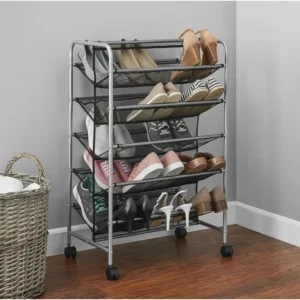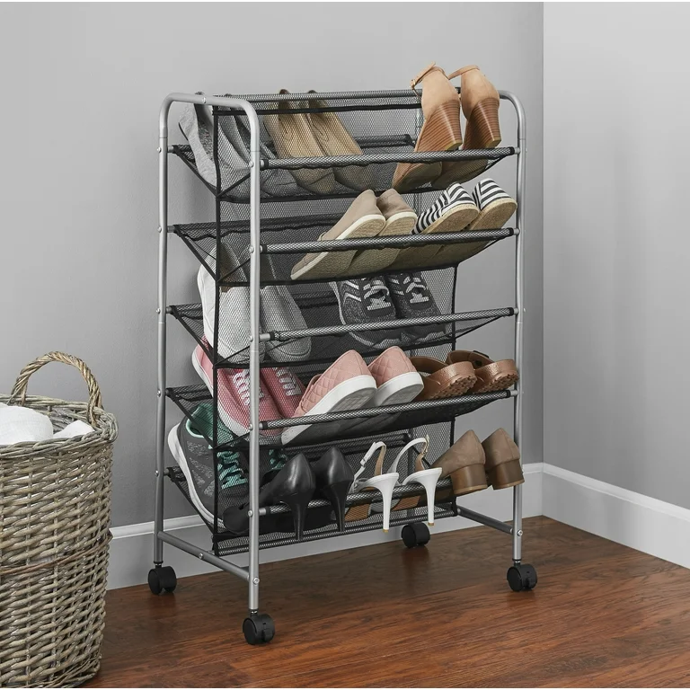 5-Tier Metal Slanted Mesh Wheeled Shoe Rack, Holds up to 30 PairS