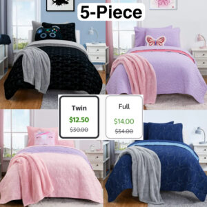 Kids Reversible Quilt Set, Twin, 5 Piece, Microfiber Polyester