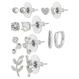 Believe by Brilliance Women’s Floral Sterling Silver Stud Earrings Set, 6 Pairs