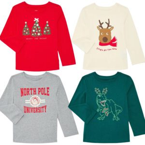 Toddler Boys or Girls Christmas Tee with Long Sleeves, Sizes 12M-5T