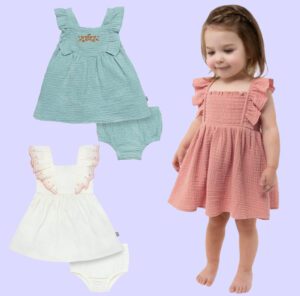 Baby Girl Dress With Ruffle Sleeves and Diaper Cover, 2-Piece, Sizes 0/3 Months – 24 Months