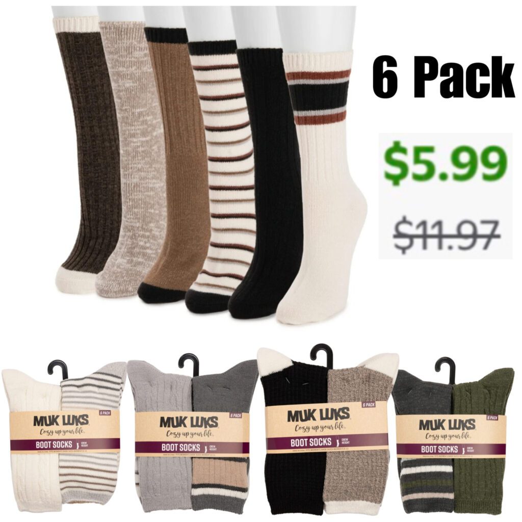 MUK LUKS Women’s Fluffy Dream Crew Boot Socks, 6-Pack