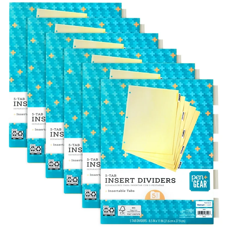 Insertable Paper Divider, 5-Tab, 6 Sets