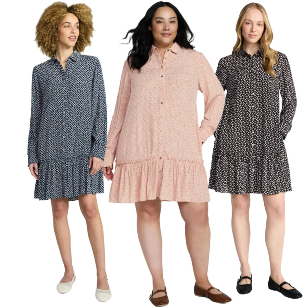 Women’s Ruffle Trim Mini Shirtdress with Long Sleeves, Sizes XS-XXXL