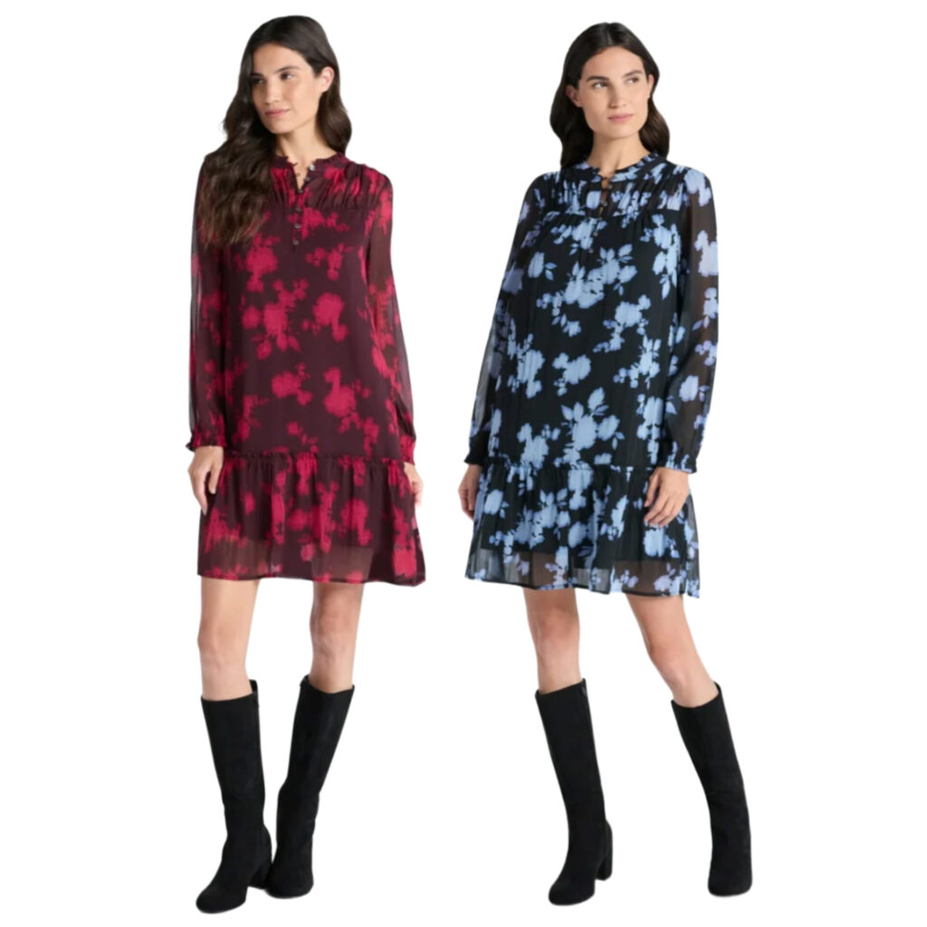 Women’s Pintuck Yoke Dress with Long Sleeves, Sizes XS-XXXL
