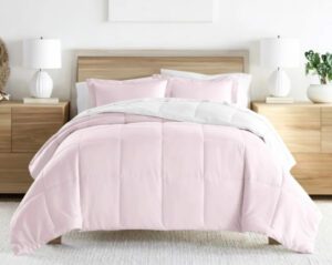 Noble Linens 3-Piece Blush & White Reversible Down Alternative Comforter Set, Full/Queen