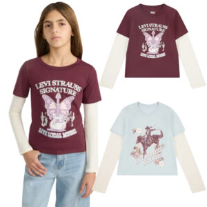Levi Strauss Signature Girls Long Sleeve Two-fer Graphic Tee, Sizes 4-16