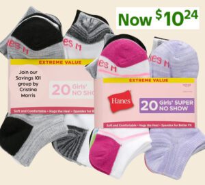 Hanes 20 Pairs, Stay-Put Low-Cut Girls’ Socks