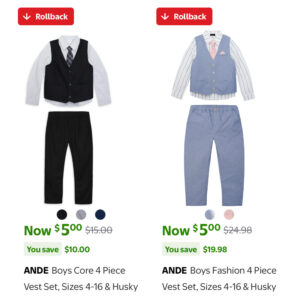 ANDE Boys 4 Piece Vest Set, Sizes 4-16 & Husky