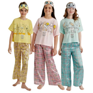 Looney Tunes X Justice Girls Sleeping Clothes Set with Eyemask, 3-Piece, Sizes 5-18