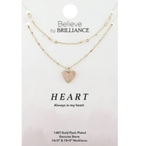 Believe by Brilliance Women’s 14Kt Gold Flash-Plated Faux Pink Druzy Heart Layered Pendant Necklaces with Extender