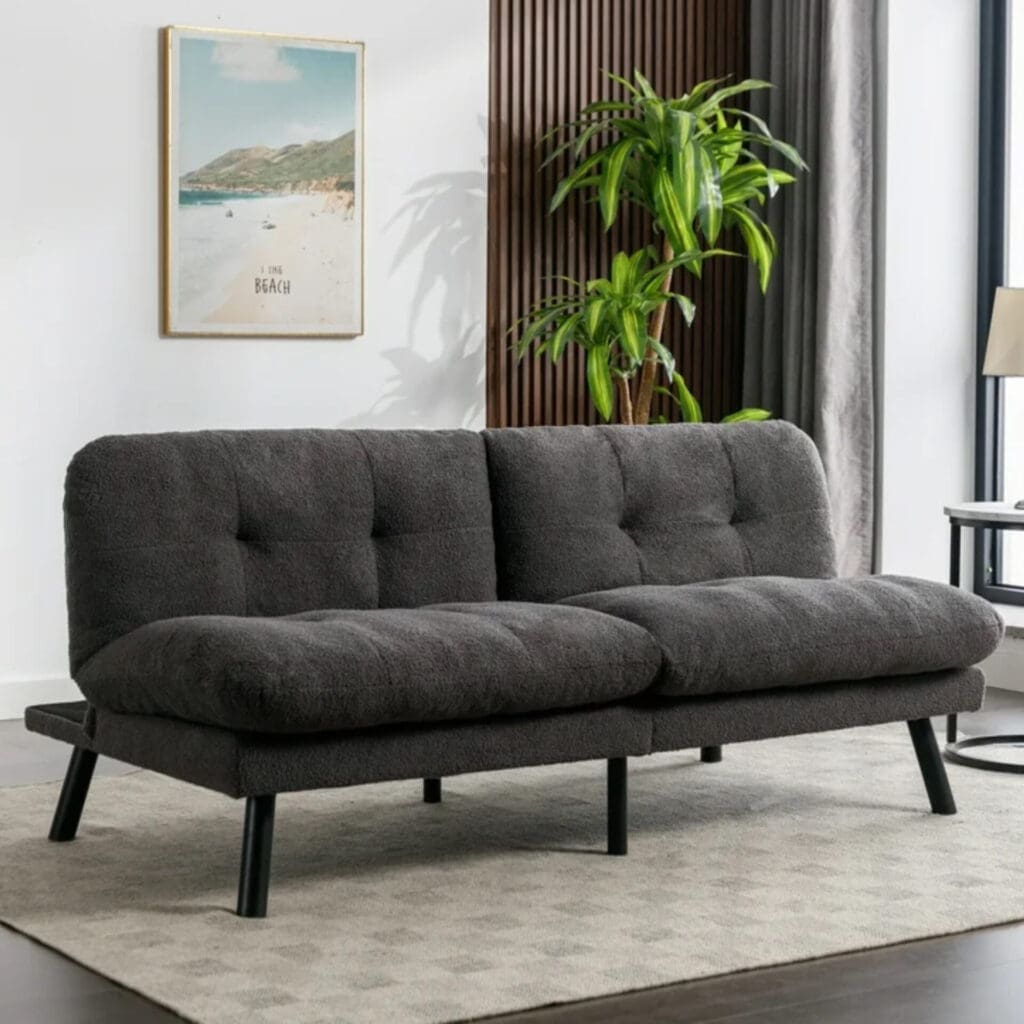 Camden Cozy Futon, Charcoal Boucle Fabric, 72″