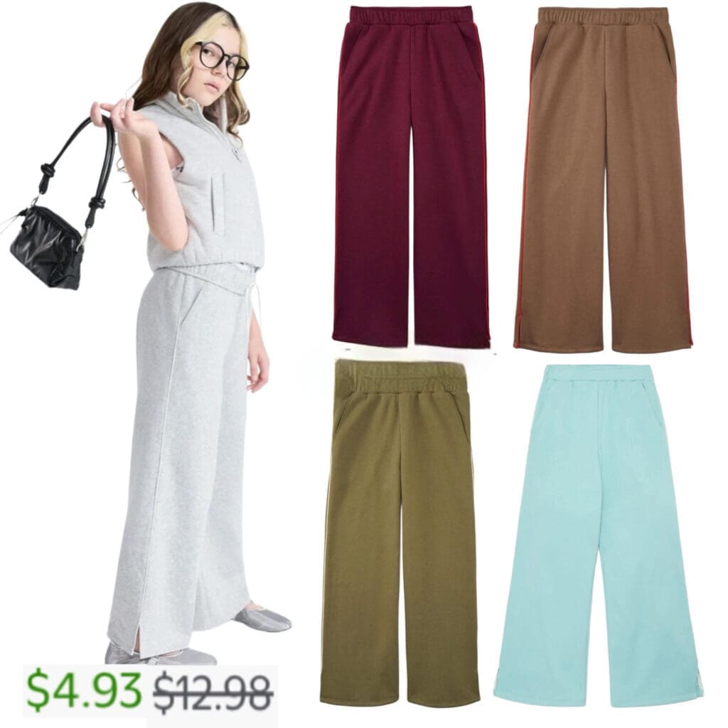 Girls Rolled Waist Fleece Sweatpants, Sizes 4-18
