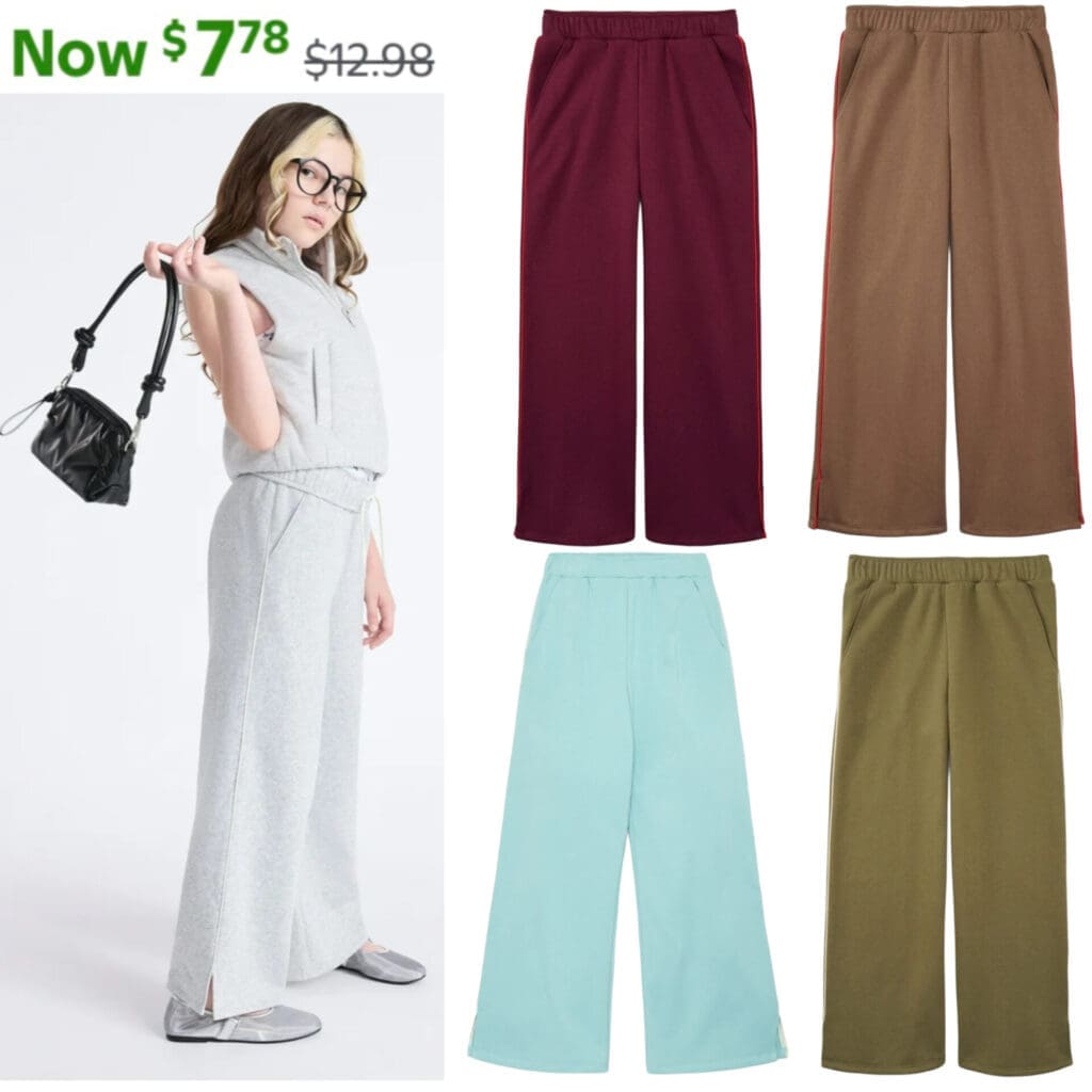 Girls Rolled Waist Fleece Sweatpants, Sizes 4-18