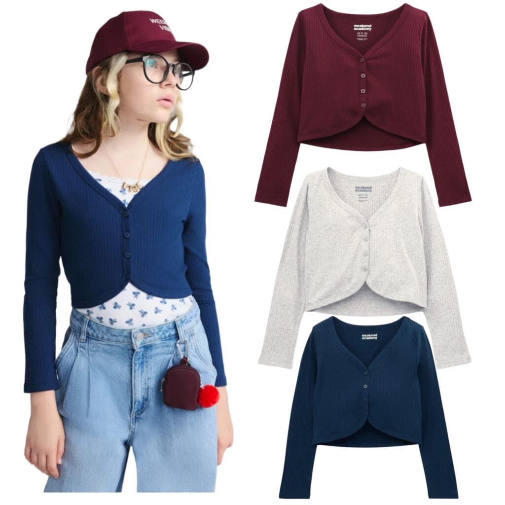 Girls Long Sleeve Ribbed Cardigan, Sizes 4-18