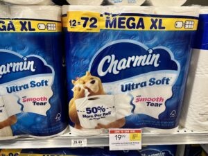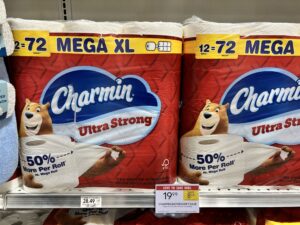 - Charmin Bathroom Tissue (12 Mega XL or 9 Mega XXL)