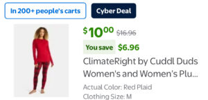 $10.00 ClimateRight by Cuddl Duds Women’s and Women’s Plus Top and Leggings Set, 2-Piece