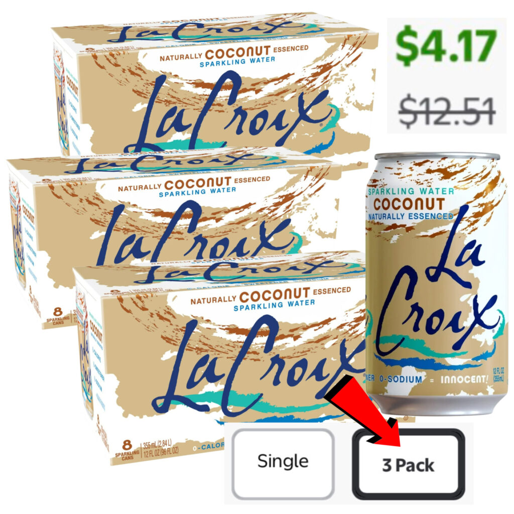 $4.17 (3 pack) LaCroix Coconut Sparkling Water, 12 Fl. Oz., 8 Count