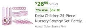 $26.99 Delta Children 24-Piece Nursery Storage Set, Barely Pink
