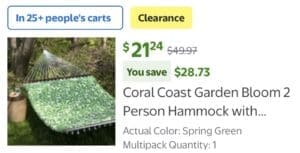 $21.24 Coral Coast Garden Bloom 2 Person Hammock with Pillow, Spring Green Color, Product Assembled Size 11.65ft L x 4.5ft W