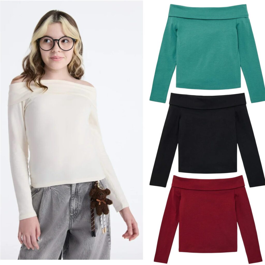 From $3.77 Weekend Academy Girls Off The Shoulder Top with Long Sleeves, Sizes 4-18