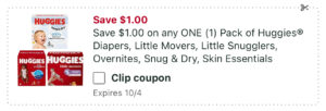 Plus there is a $1/1 Huggies Digital coupon to clip hereclip here