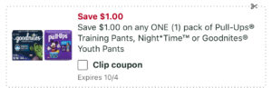 Or $1/1 Pull-Ups Digital coupon herecoupon here