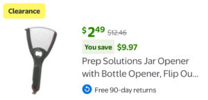 $2.49 Prep Solutions Jar Opener with Bottle Opener, Flip Out Blade for Packaging and Can Tabs